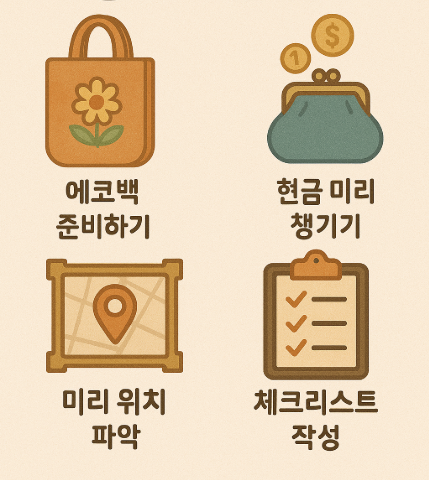 - 대부분 셀러는 현금 또는 계좌이체를 선호하니 소액 현금을 챙겨가는 것이 좋아요.